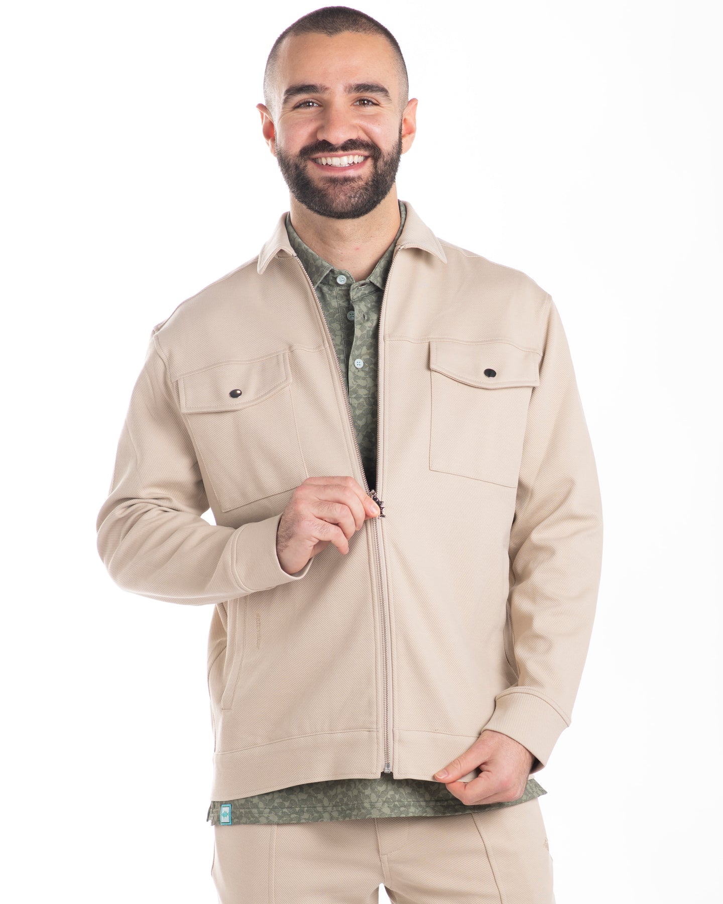 A stylish layer for transitional weather, offering a subtle, sophisticated edge to any outfit. Featuring an easy full-zip front and thoughtfully designed roomy pockets, it keeps your must-haves close while elevating your look.